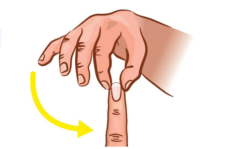 Воспользуйтесь большим и указательным пальцами правой руки – сделайте надавливающее движение на верхнюю область большого пальца левой руки, при этом сжимая корень ногтя.